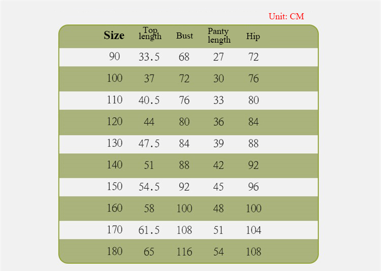 | Kid Size | 90, 100, 110, 120, 130, 140, 150, 160, 170, 180 |