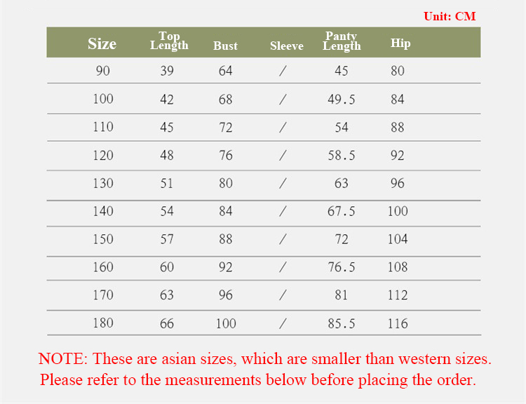 NOTE: These are asian sizes, which are smaller than western sizes. Please refer to the measurements below before placing the order.